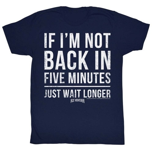 if i’m not back in 5 minutes high-quality shirts with great designs from Ace Ventura