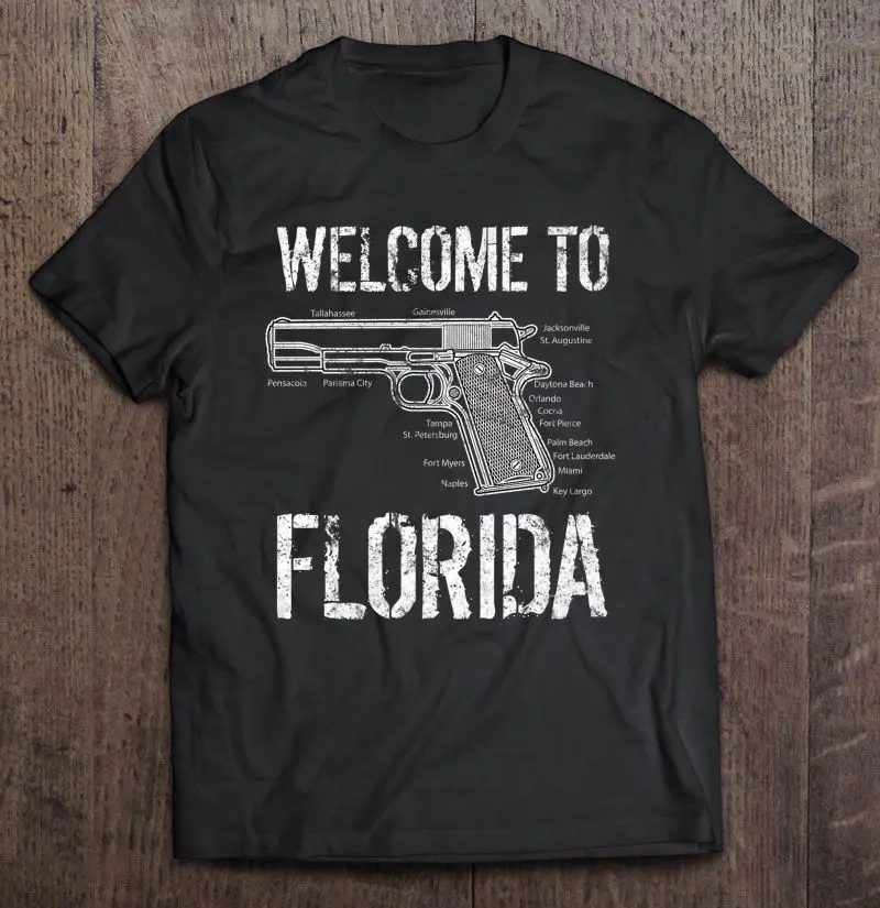 welcome to the gunshine state t shirt high-quality shirts with great designs from 2nd Amendment,Florida,Gun,Gun Violence,gunshine state,Thin,tow truck drivers,USA,welcome,yellow line